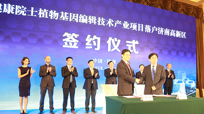 On May 24th, the signing ceremony of plant gene editing technology industrial base project was held in Ji'nan. Before signing the contract, Wang Zhonglin,the Standing Committee of the Provincial Party Committee, Secretary of Ji'nan municipal Party Committee,Sun Shutao,Deputy Secretary of Ji'nan municipal Party Committee, the acting mayor of Ji’nan, met Zhu Jiankang, director of the Shanghai Institute of plant adversity biology research center. Tang Bo,President of SDNU, Duan Peiyong, Vice President of SDNU attended the ceremony and witnessed the signing ceremony.