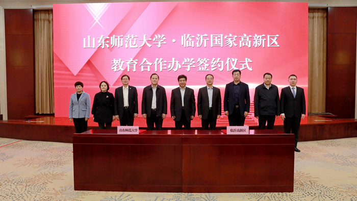 Recently, SDNU and Linyi National High-tech Zone held a signing ceremony for educational cooperation. President Zeng Qingliang and Vice Mayor of Linyi Zheng Liansheng attended the signing ceremony and delivered speeches. The signing ceremony was presided over by Xu Zhongsheng, Secretary of the Party Working Committee and Director of the Management Committee of Linyi National High-tech Zone.